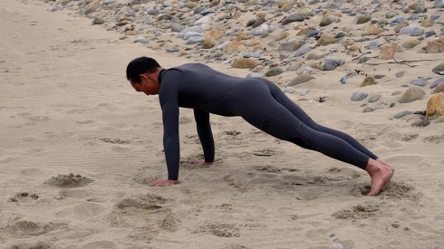 This training program include exercises for stretching, coordinative training, strength and stability. With surfing, for example, you will need spinal rotation to carve into your turns, lower limb stability to land airs and stay compact in the barrel, shoulder mobility and strength to paddle. With this program, all above mentioned aspects of surfing are targeted. You can put extra emphasise at those exercises that help you work on the weaker characteristics of your body, for instance mobility for some surfers, strength for others.